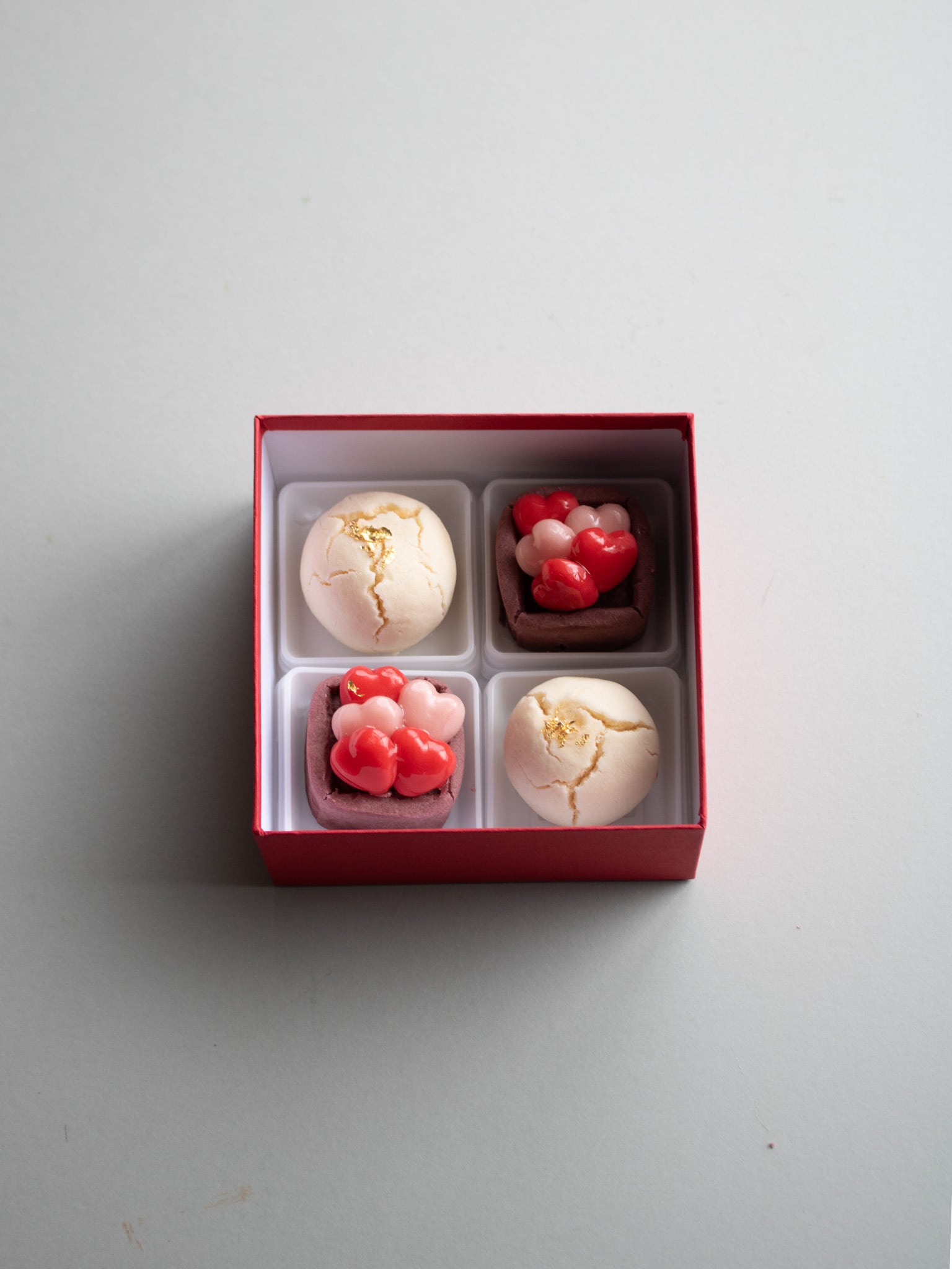 バレンタインにふさわしい上生菓子、全4個入りでお届けいたします。